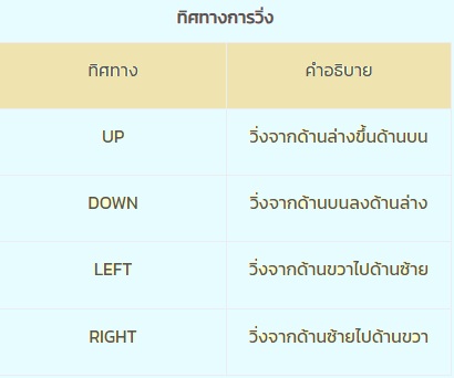 ให้ตัวอักษรเคลื่อนที่ได้ ทั้งเคลื่อนจากซ้ายไปขวา เคลื่อนที่จากขวาไปซ้าย เคลื่อนที่