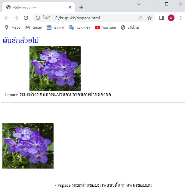 การกำหนดระยะห่างของขอบภาพโดยใช้คำสั่ง vspace และ hspace