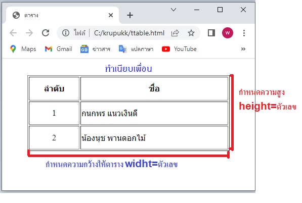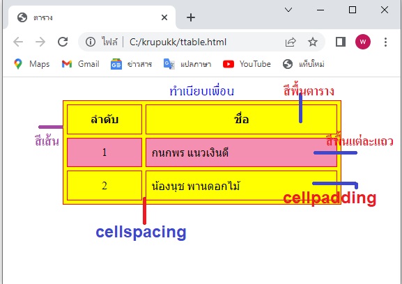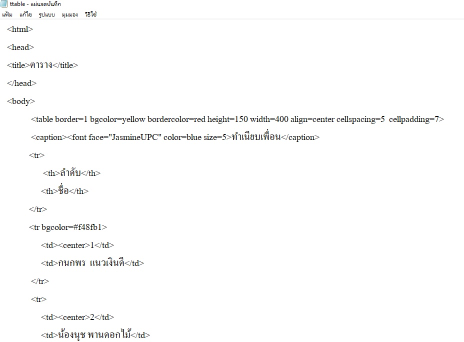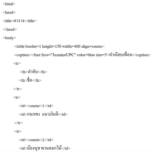 ตัวอย่างการสร้างตาราง